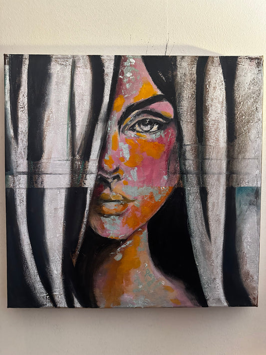 Reflections of the Soul (Charcoal , ink and oil on canvas)